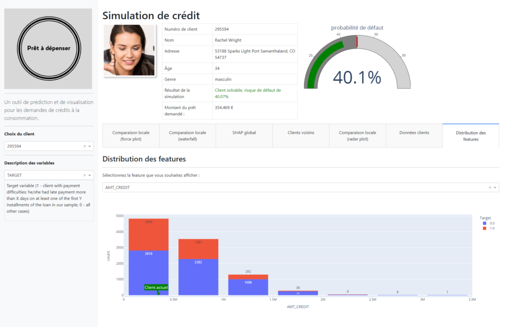 - Interactive Dashboard: Addressing the need for transparency, we designed an interactive dashboard tailored for client relationship managers. This dashboard not only elucidates credit granting decisions but also provides clients with easy access to their personal information.