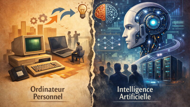 Depuis quelques années, l’essor rapide de l’intelligence artificielle (IA) suscite de nombreux débats. Un argument revient souvent : le shift de l’IA serait comparable à celui de l’ordinateur personnel (PC) dans les années 1980–1990. Selon cette lecture, l’histoire se répéterait : une technologie disruptive, des inquiétudes initiales, puis une phase d’adaptation collective menant à de nouvelles opportunités.